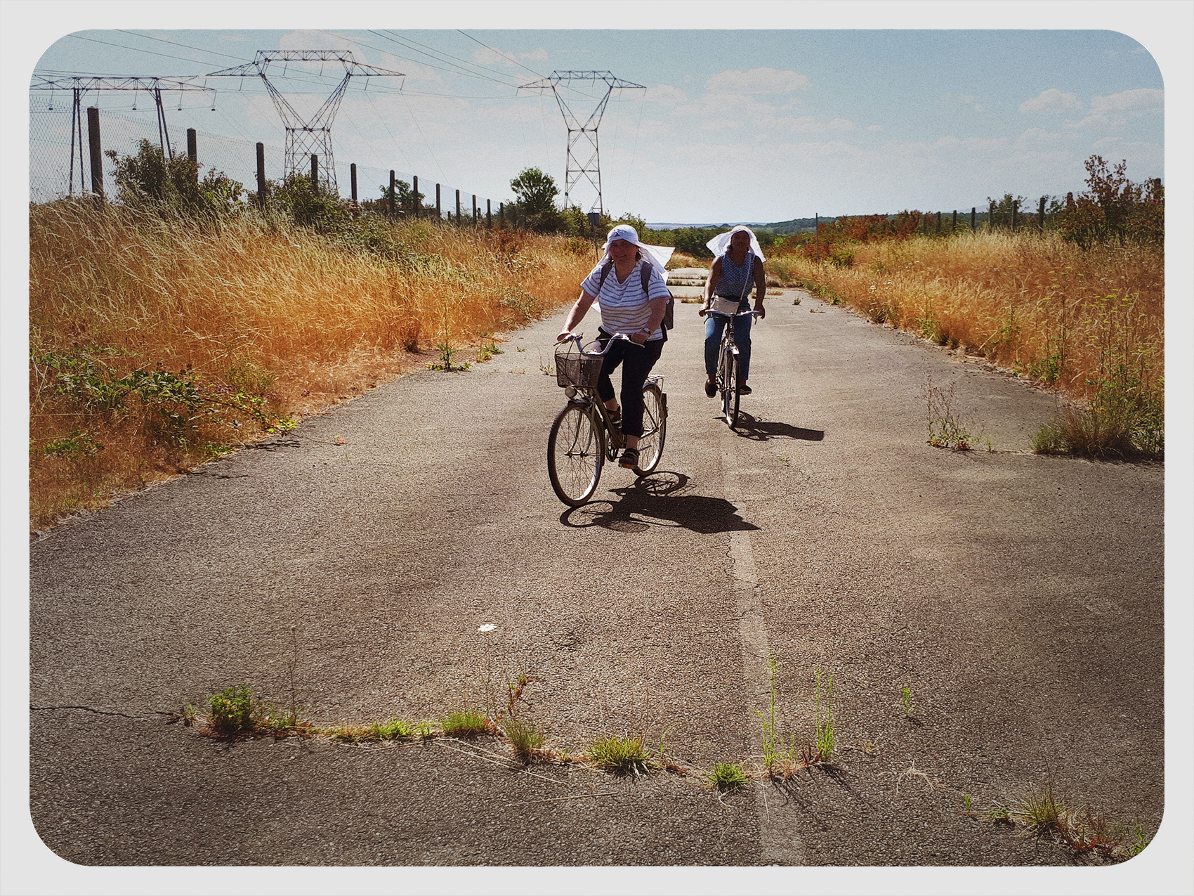 | | | | Je me retrouve devant une grande barrière fermée. Un grand portail, de ceux qui s'ouvrent en coulissant automatiquement. Mais à côté, le grillage est un peu défoncé. Je m'y glisse avec mon vélo, pas question de l'abandonner. Et là miracle une route, une grande route, large mais vide, sur laquelle les acacias, et diverses autres herbes dites mauvaises avaient poussé, un peu partout, dès que se trouvait une fissure, une route d'un monde abandonné, d'un monde d'après cataclysme, où je serai la seule survivante, comme dans "Ravage " de Barjavel. Une situation qui me semble assez appropriée à mon état d'esprit, non seulement à ce moment là, en plein "confinement" mais aussi, je l'avoue, en général. |