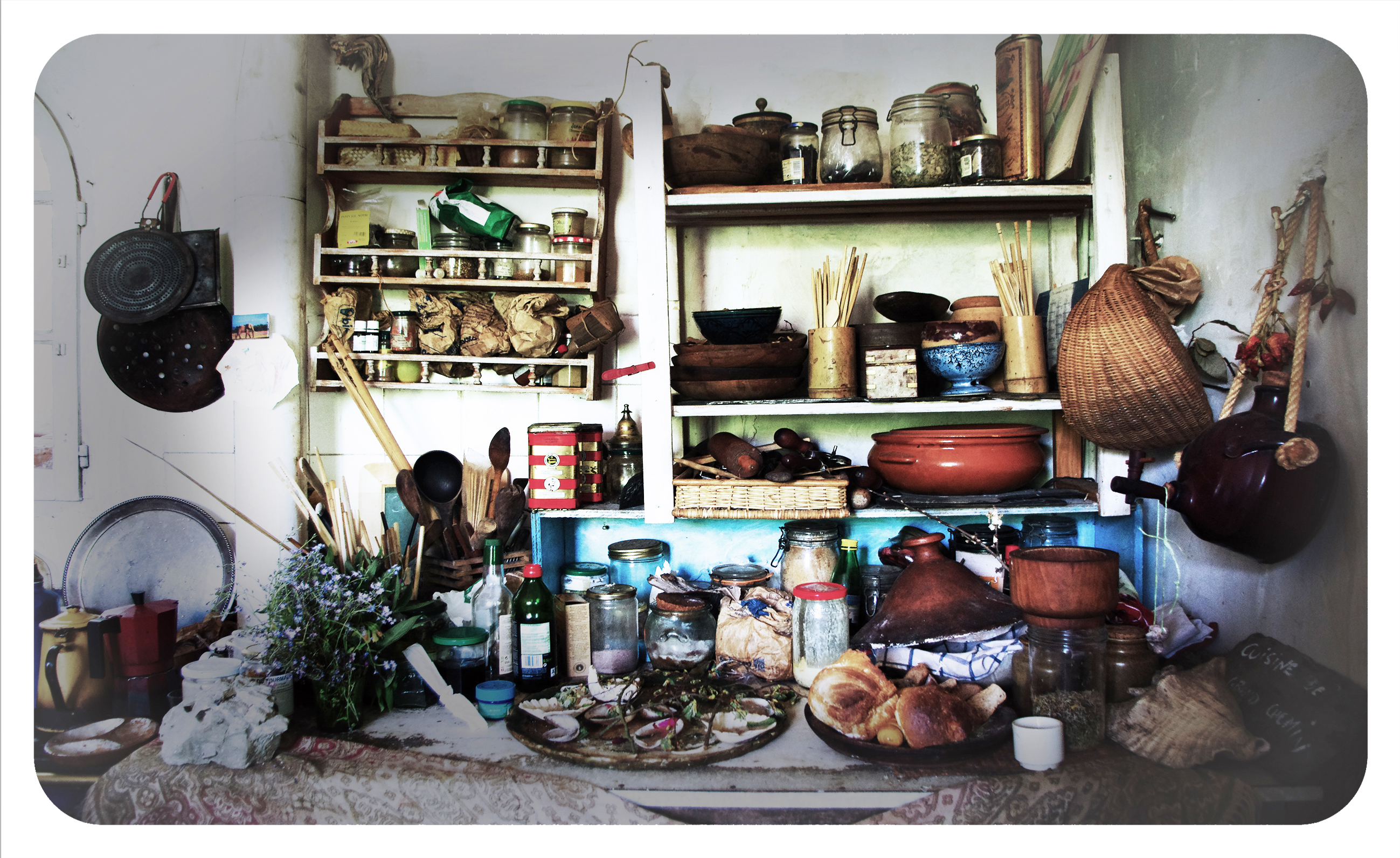 Après ces jours d’une pluie continuelle, le soleil apparait et les oiseaux sont contents,, leur silence a pris fin, ils ont même esquissé des petits bouts de chants en plus de leurs appels et cris. Dans un arbuste devant ma fenêtre j’ai mis des boules de graisse pour tous ces petits passereaux qui s’en donnent à cœur joie de picorer ces nourritures industrielles. J’ai des complexes car je me dis qu’ils vont devenir comme nous, qui préféreront fouiller dans notre congélateur pour y extraire une pizza plutôt que d’aller ramasser ce qui pousse dans le jardin. Je n’ai jamais de pizza dans mon congélateur, mais si j’avais eu quelque chose je ne sais pas si hier soir je me serai cuisiné ce plat délicieux : il faut des feuilles de bourraches, et même des fleurs et les graines qui sont encore sur les tiges, ce que j’ai à différents endroits de mon jardin. La bourrache est une plante très rustique. J’en ai donc cueilli et je les ai mis à cuire dans de l’huile d’olive de l’ail et des piments, et même des petites tranches très fines de curcuma frais. Il faut bien faire revenir tout ça puis rajouter quelques œufs battus par-dessus. Ça fait une omelette délicieuse, c’est Anna qui m’a donné la recette. Sauf le curcuma que j’ai rajouté. Les italiens ont des façons de cuire les légumes bien plus intéressantes que nous les français. Si tous les petits français avaient des mamans italiennes, ils aimeraient les épinards, les brocolis, et les blettes. Tous ces légumes d’hiver mal aimés car on les cuisine d’une façon fade et sans imagination. En fait le secret est assez simple : ail huile d’olive, piment et épices ! Tout ça pour dire que mes oiseaux à qui on a enlevé beaucoup de leurs insectes et de leurs baies sauvages, et qui donc sont bien moins nombreux qu’avant, et qui l’hiver souvent meurent de froid et de faim, c’est un peu notre devoir de les soigner, de les protéger. Donc de leur donner un peu de bouffe finalement c’est bien. Si je peux en sauver quelques-uns tant mieux. En plus de me faire plaisir à les observer dans mon arbre.