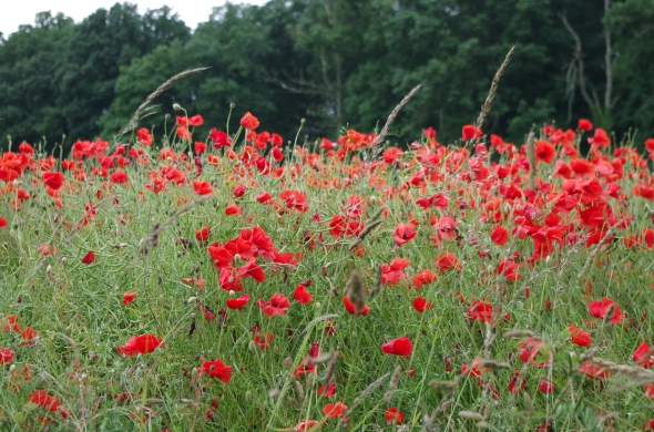Du coup j’ai quitté ma chambre, et suis descendue me faire un café. La cuisine donne sur le jardin mais comme le terrain est en pente, elle est à moitié enterrée, et devant la fenêtre on a le sol extérieur au niveau des yeux. J’étais contente de pouvoir admirer tous ces coquelicots qui se balançaient en lieu et place des sac de gravats. Ici, c’est le pays des coquelicots, le sol sableux des alluvions de la Seine leur convient parfaitement, et c’était la première fois que j’en avais autant dans mon jardin. Je venais aussi de faire des semis de cosmos et autres fleurs d’été. J’étais ravie d’être enfin chez moi.