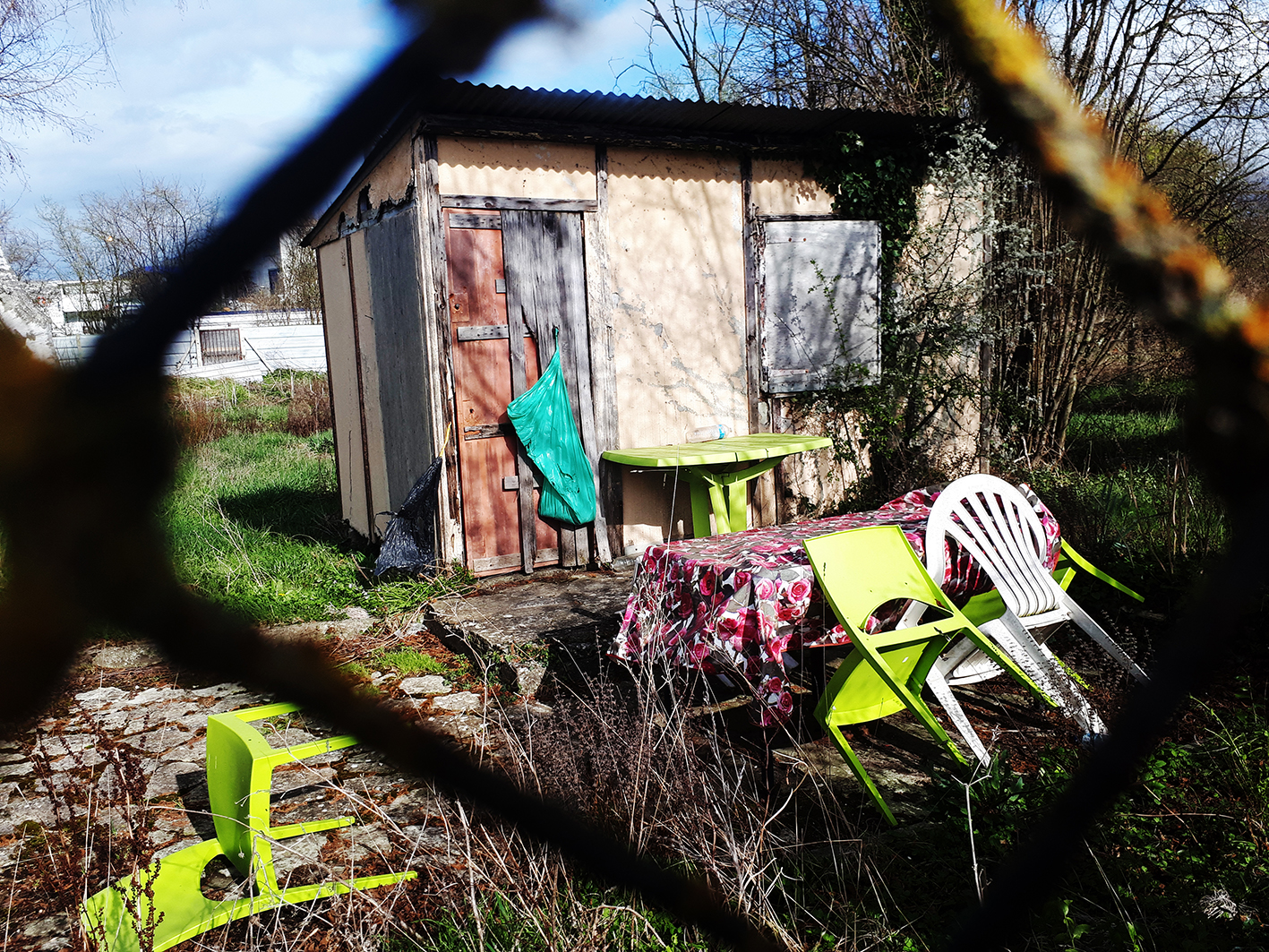Les choses inutiles | Je ne sais pas à qui j’ai dit l’autre jour alors qu’on me demandait ce que je faisais en ce moment, « des choses inutiles, j’aime bien faire des choses inutiles » . En effet, depuis quelques jours je me suis mise à faire « des choses » dans le jardin absolument « inutiles », dans le sens où le temps qu’elles prennent par rapport au résultat, mais quel résultat ? L’équation ne se pose pas vraiment mais bon tant pis, disons que le ratio temps versus résultat est quasi nul. Ce n’est pas comme si je me mettais à travailler et à « faire de l’art » enfin d’essayer, non ça va encore plus loin. L’art on sait que c’est un peu utile parce que ça permet à certains de gagner de l’argent, (et pour reprendre un triste poncif de notre époque, peu gagnent beaucoup et beaucoup pas beaucoup, voir rien). Je me souviens que dans ma précédente maison j’avais récupéré des briques toutes pourries et pleine de terre et fait une espèce de sol, en les calant l’une à côté de l’autre, sous une vague grange à moitié en ruine, tout en sachant très bien que rien ne se passerait là, que l’herbe l’envahirait en une seconde et demie, et que ce serait complètement inutile, et pourtant j’y ai passé des heures, accroupie dans l’herbe humide les mains dans la terre. |  | Le beau temps, relatif mais tout de même, l’herbe qui pousse, les feuilles qui sortent et les oiseaux qui se mettent à chanter me donnent envie de faire comme eux des choses « inutiles », sauf que moi je ne sais plus faire des choses vraiment inutiles - l’humaine civilisée que je suis- alors les miennes le sont vraiment, inutiles, alors que celles de la nature sont utiles à la vie ce que nous avions oublié et dont nous commençons tout juste à nous rappeler. Leurs choses inutiles-utiles à eux sont aussi poésie et nous avons éradiqué la poésie, puisqu’elle fait perdre du temps. Nous avons jeté le bébé avec l’eau du bain, et sommes un peu emmerdé en ce moment. C’est un euphémisme. Donc j’essaie de retrouver l’inutilité, mais c’est en écrivant que je le formule, car en vérité je n’y pense pas, comme la nature n’y pense pas non plus en ce moment alors qu’elle se déploie, mais je ne suis pas sûre d’y arriver. Autre euphémisme. Vous vous dites que je pétes un plomb et que je ne comprends plus rien, utile ou pas utile qu’est-ce qu’elle raconte ? Dans un sens c’est vrai. Il y a de quoi péter un câble. |  | Pour vous donner des exemples de choses inutiles que je fais : 1ère chose inutile : tout le long de la clôture qui me lie à la Seine, se trouvait un grillage de cinquante centimètres de haut qui ne me gênait nullement, et qui devait à une époque délimiter un parterre de fleurs. Je me suis mise à l’enlever sur une vingtaine de mètres, à tirer dessus, coincé dans le sol, accroché à des bouts de métal enfoncés dans la terre là aussi en tirant pour les déraciner, sans compter les broussailles, ça m’a pris presqu'un après-midi. Me voilà donc avec un rouleau de grillage, plus ou moins en bon état. Puis je me dis je vais délimiter une zone du jardin pour la poule et le coq, car la poule commence vraiment à prendre ses aises, elle rentre dans la maison dès que je laisse la porte ouverte, elle chasse le chien des amis, en faisant beaucoup de mouvement avec ses ailes et des cot-cots furieux, et puis les crottes un peu partout comment à me gonfler. |  | Je sépare donc le jardin en deux en ayant des états d’âme, je pense qu’« ils » vont s’en apercevoir que je coupe leur espace en deux, ce n’est pas cool, ils adorent aller dans tout le jardin, ils ont leurs zones à différents moments de la journée et dépendant du temps qu’il fait. Quand je les vois vivre, je pense aux élevages intensifs et je me dis encore plus qu’avant, quelle monstruosité, c’est évident que ces deux-là sont chez eux dehors, où il y a de l’herbe, des arbres, des insectes, de la terre à gratter, on ne peut pas leur enlever ça. Alors, ma barrière je la fais en plusieurs temps, et à la nuit tombée seulement je mets le bout de tôle final pour fermer, ce n’est pas encore une porte. Et en arrière-plan je me dis, quand même, puisque le coq vole jusqu’à une branche du cerisier pour dormir, (la poule elle, n’aime pas être en hauteur) il va réussir à passer par-dessus la barrière, non ? Mais en même temps, aucun des deux ne rentre là où je fais sécher le linge, alors qu’il n’y a pour le séparer du reste qu’un tout petit bout de bois de trente centimètres de haut. Le lendemain matin comme prévu le coq et la poule m’attendent à la porte de la cuisine. Ils ont bien compris que je ne voulais diviser le jardin en deux que parce qu’il le fallait : il ne faut pas avoir une poule et un coq qui gambadent dans tous le jardin quand on est une personne civilisée, élevée à la capitale et qui en plus architecte dplg, n’oubliez pas le dplg, même si plus personne ne sait ce que ça veut dire. Donc clôture inutile, symbolique, mais qui ne sert à rien. En plus je me prends les pieds dedans et, en voulant la sauter en courant comme si j’avais encore vingt ans je me suis pris une bonne gamelle. |