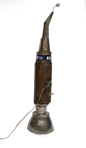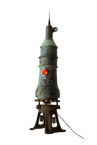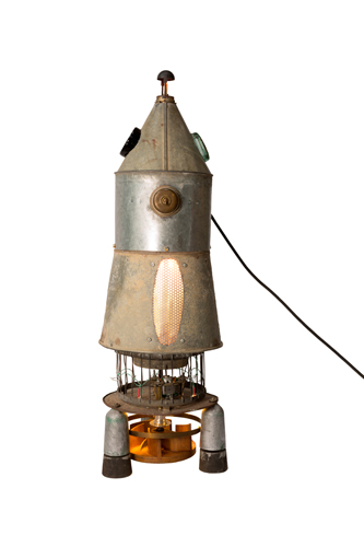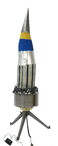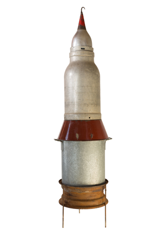 Je pensais donc à la soudure car quand je regarde les miennes elles ne ressemblent pas beaucoup aux images des « soudures comme il faut » : le « cordon de soudure » chez moi est un peu mitigé. Et puis il y a quelques jours j’ai démonté une vielle tondeuse qui ne marchait plus, car le réparateur m’avait dit « Niet ! », (maintenant ils disent presque tous ça, avant que la tendance ne s’inverse un jour). Dans tous les cas pas question d’aller dans un « repair café » passer des heures à réparer moi-même le « carbu » de ma tondeuse. Donc je la démonte pour récupérer ce qu’il y a à récupérer, c’est le nerf de la guerre des artistes de la récup. Si c’est drôle au début et qu’on est plein d’enthousiasme à l’idée de trouver des pièces intéressantes, au bout de quelques après-midi (oui ! même si ce n’est pas à plein temps) c’est vraiment l’horreur. On aimerait avoir le matos adéquat, la bonne clef, le bon tournevis, le super dégrippant, les bonnes mains, grandes et fortes, savoir dans quel sens on tourne le boulon du moteur, etc…. Au début c’est rigolo de chercher et d’apprendre des trucs sur la mécanique, mais à un moment quand tout l’huile se déverse à vos pieds , puis qu’on bouche un trou et puis sans faire attention on retourne l’engin pour démonter autre chose et bien ça recoule en masse par un autre trou, puis à la troisième flaque d’huile noire au milieu de l’atelier, là on craque … On en peut plus de cette putain de tondeuse. Sans parler de tous le corps qui fait mal et des mains noires qui ne se lavent jamais à fond. J’ai récupéré des roues tout de même. Bref cet épisode de démontage à peu près fini, me rappelait aussi celui d’un lave-linge qu’un voisin m’avait donné. Il n’y a pas d’huile là-dedans mais c’est dégueu, plein d’odeurs de vielles lessive, de bourres, de graisses marronnasses solides… en plus ce n’était pas « notre » crasse. A la fin j’étais un peu contente, j’ai eu un tambour et des tôles pour la fusée. Mais bon : « quel boulot ! » dirait ma mère. |